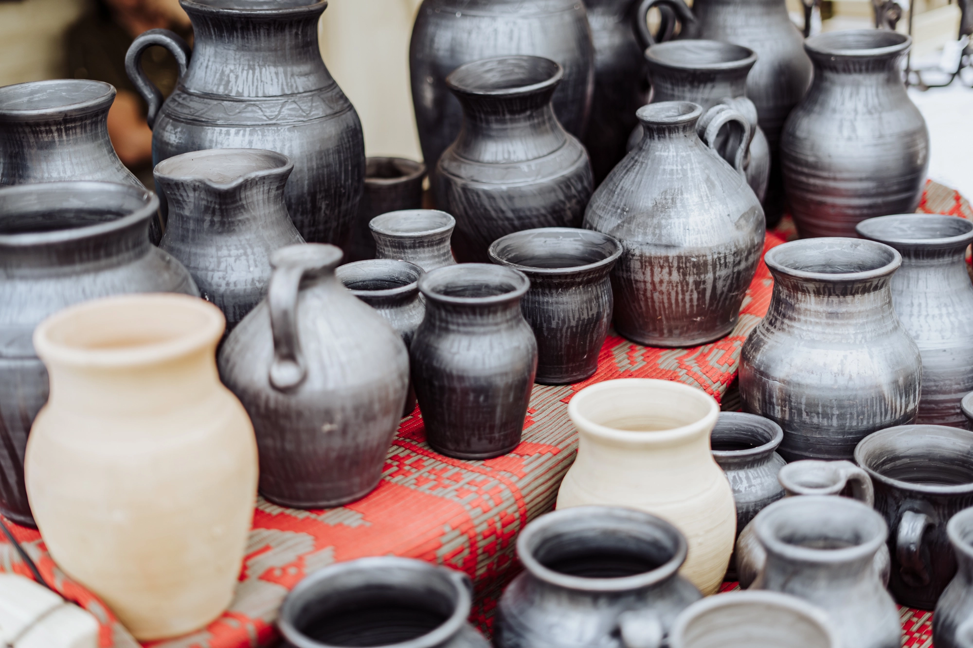 Na stoisku pana Mirosława znajdziemy ceramikę siwą (wypalaną bez dostępu powietrza), która jest znakiem rozpoznawczym regionu, z którego pochodzi twórca. Formy i zdobienia naczyń są tradycyjne dla Podlasia. Są to dzbany, ładyszki, buńki, szabasówki czy dwojaki.
